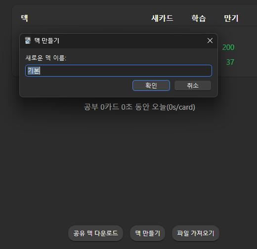 그동안 이미 만들어진 공개 덱이 많아 받아서 넣기만 하면 바로 학습이 가능하다