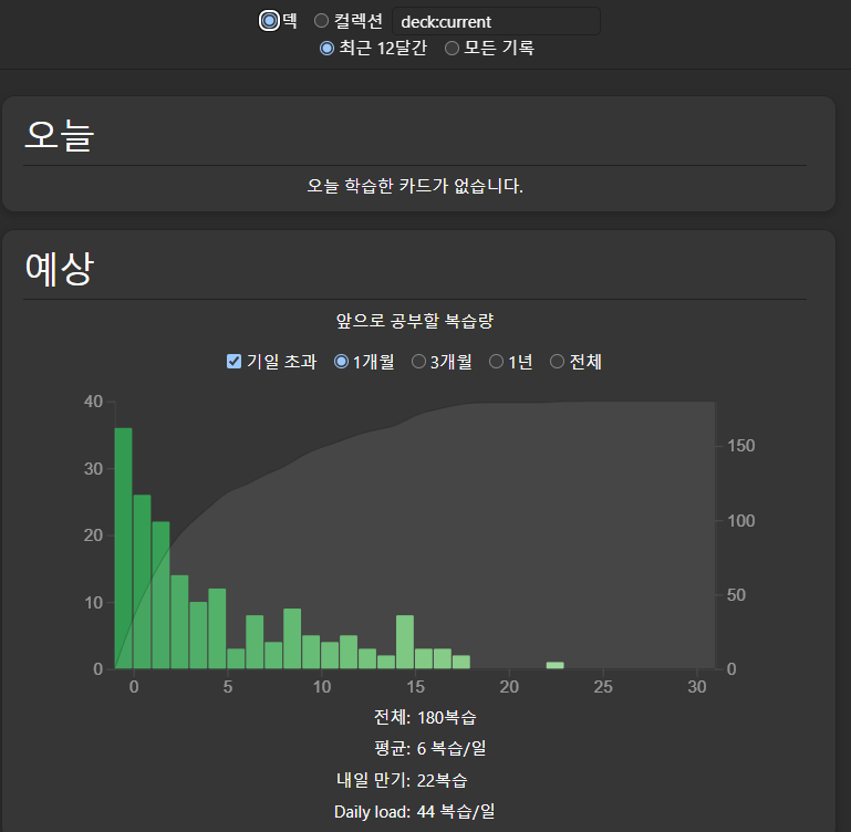 복습 카드 : 과거에 학습한 카드 중 일정 기간이 지나서 다시 학습할 차례가 된 카드